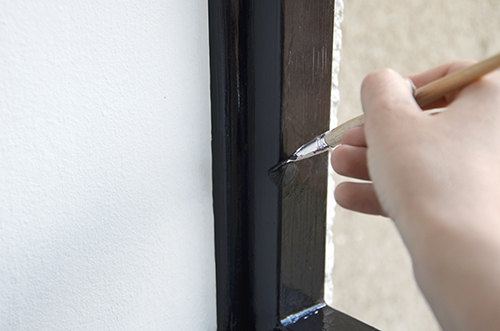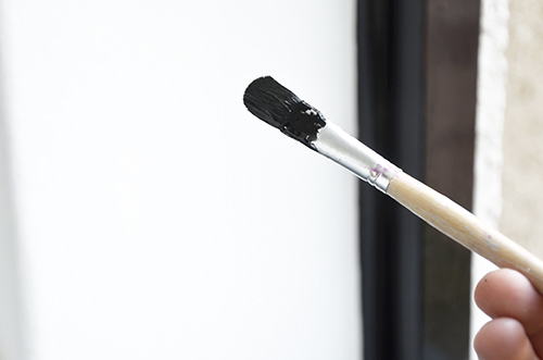 Egészen kisméretű, vékonyszálú, de sűrű lapos ecsettel dolgoztam, ezzel nem csak a kereteket lehet szépen átfesteni, de a fal és a keret találkozását maszkolószalag segítsége nélkül is precízen meg lehet húzni.