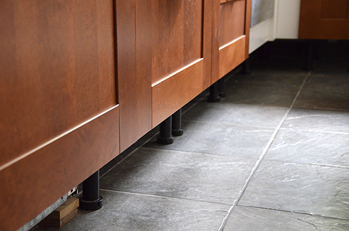Ahogy megnyílt a fal (a nappaliból, sőt még a hálóból is át lehetett látni a konyháig) szemet szúrt egy dolog, amivel addig nem is foglalkoztam. Ez pedig a bútor lábazata. Pontosabban hiányzó lábazata. Messziről teljesen beláttam a konyhabútor alá, ez semmiképpen sem maradhatott így.
