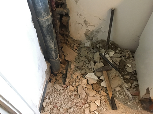 Az ázás helyét bontással tárták fel a szakik (a főnyomó cső volt bűnös), kicserélték a hibás szakaszt, majd jónéhány nap száradás után kijavították a falat.