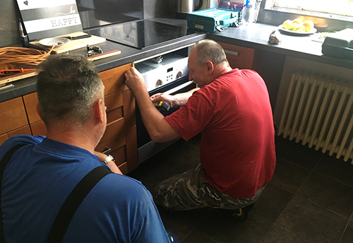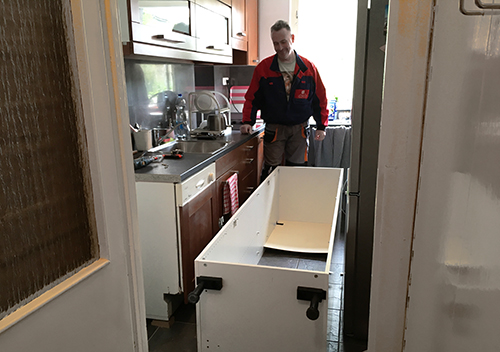 Ennek megállapításához ki kellett szedni azt a magas elemet, amibe a sütő volt beépítve. Annyira nem bántam, sőt, itt már tudtam, hogy vissza sem fogom rakatni, inkább a nagy hűtőt nyomom be a helyére.