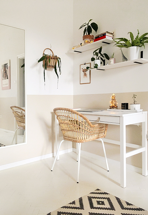 A fent említett szőt rattan maradékából (amiből kosár is készült a plédek számára) még ünnepi dekorációra is futotta. ITT írtam róla egy posztban, amiben az újrahasznosításé a főszerep. Tetszik, hogy a polcon visszaköszön piciben ugyanaz az anyag, csak egy kicsit más formában.