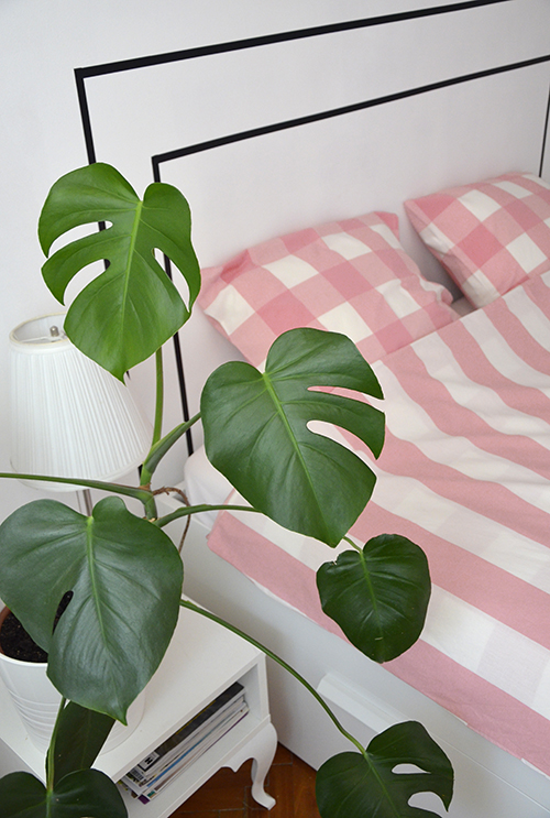 A kárpitozott ágyvégemtől (ITT) egyébként megváltam, mert bár imádtam, és elhoztam ide magammal, de valahogy mégsem találtam jónak a mostani hálómban! Egy darabig tervben volt, hogy újrakárpitozom, de most már inkább új ágyvég megoldáson agyalok… Egyelőre dekortapasz csíkokkal oldottam meg, hogy némi karaktert adjak a hálónak. A dekortapasz, mint mindig, most is a Dekorella Shopból érkezett, INNEN.