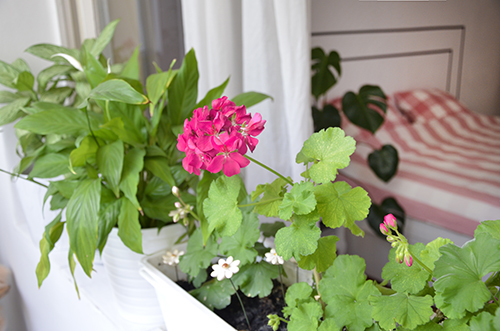 A kis erkélyemről benézve a hálóba ezt látom. Ezek egyébként azok a muskátlik, amiket tavaly vettem (ITT), és a Szüleimnél teleltek.