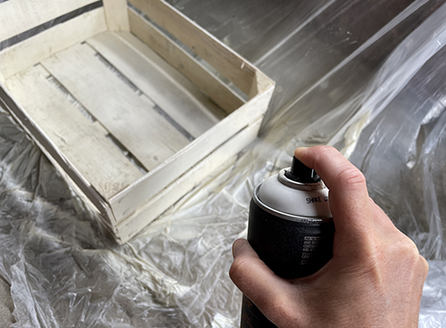 Úgyhogy, fogtam egy – zöldségestől is beszerezhető – ládát, és gyors csiszolás után lefújtam sprayfestékkel fehérre színre. Valójában, ha nem lett volna semmilyen logó, vagy felirat rajta, hagytam volna natúr színben, de mivel volt rajta, ezért jobbnak láttam, ha ezt néhány réteg sprayfestékkel szépen elfedem.