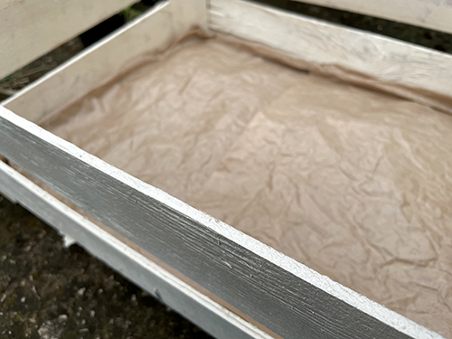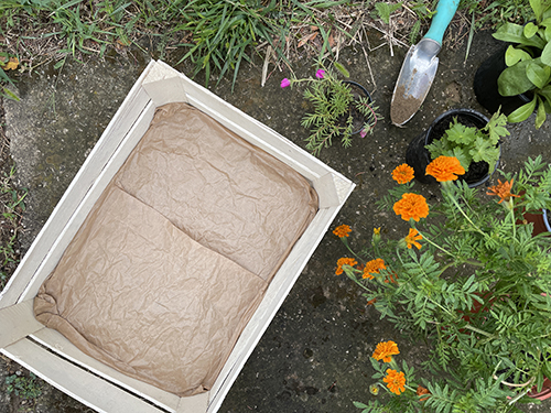 A láda alját kartonnal és natúr papírzacskóval béleltem ki.