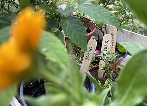 A növények jelölésére fa spatulát használtam, amire alkoholos filccel írtam fel az elnevezéseket.