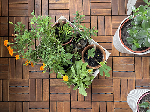 Míg nem indultunk útnak, addig a növényekkel teli és ültetéskor alaposan megöntözött növényeket az erkélyemen tároltam, hogy ne essenek össze, mire átadásra kerülnek.