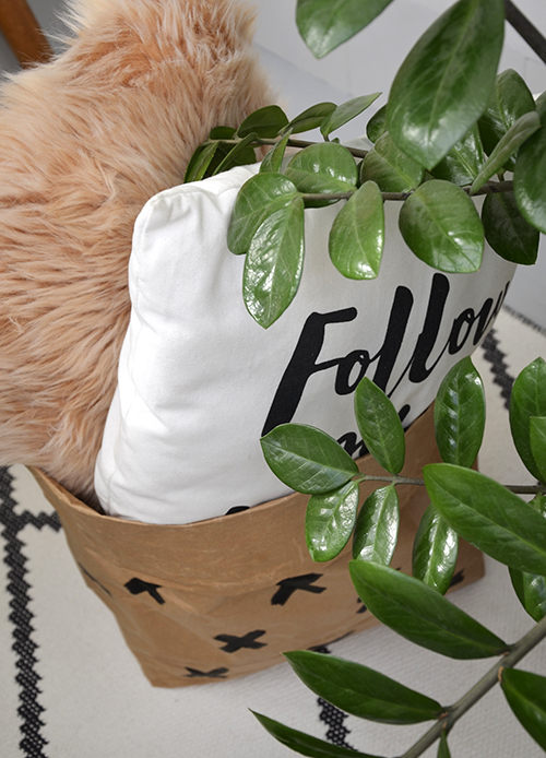 A natúr papír csomagolást sem dobom ám ki, hanem inkább újrahasznosíthatom! Egyrészről tárolásra is alkalmas (dió, mandula, stb. is rakható bele), de menő dekorációként is bekerülhet a lakásba. Nyilván, ez nem egy új ötlet, de ha már papírzsák is érkezik a párnákkal, paplanokkal együtt, akkor kár lenne nem kihasználni a benne rejlő további lehetőseg sem: érintetlen állapotban, vagy akár díszített formában a nyakát többször visszahajtva és egy kaspót növényt beletéve jól mutat benne egy kis (nagy) zöld is, ugye?