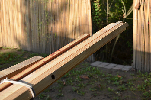 Az előfúrásra azért volt szükség, mert a vékony fenyőlécek a csavar meghúzásakor megrepedhetnek.