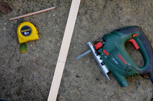 Az egyenlő távolságokat egy régi bútorból megmaradt léccel biztosítottam, és erre skicceltem fel ceruzával az időközben kitalált új elképzelést is: