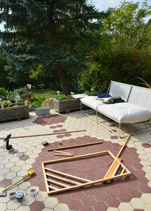 Eredetileg úgy gondoltam, hogy végig párhuzamosan rakom majd a léceket, aztán a negyedik elemnél elkezdtem agyalni azon, hogy talán mégis variálhatnám egy kicsit a lécek elrendezését.