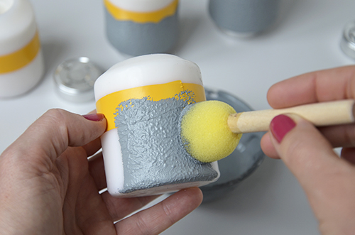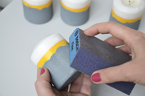A második réteget ugyancsak szivacsecsettel dolgoztam rá a a gyertyára, ezúttal viszont úgy kentem, mintha ecsettel dolgoznék. Teljes száradás után finoman megcsiszolgattam a felületet, majd óvatosan leszedtem a maszkolást.