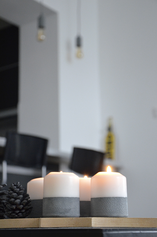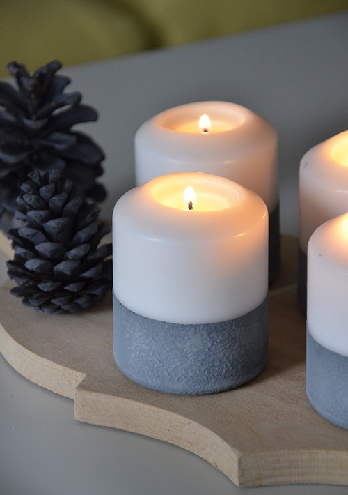 A minap kikevert beton hatású festéknek nem sok pihenőidőt adtam. Mivel hamarosan kezdődik az adventi időszak, gondoltam, kipróbálom, hogy működik-e viaszos felületen is, úgyhogy ezúttal gyertyákat dekoráltam vele.