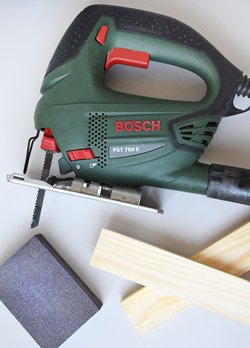 Ezen kívül szükségünk lesz még mérőszalagra, 10 db 40 mm hosszú csavarra, egy közepes csiszolószivacsra, sprayfestékre, dekopírfűrészre és fúró/csavarozógépre. Haha, mindössze 6 összetövőből meglesz a dekorlétra! El is gondolkodtam, hogy gyakrabban készíthetnék ilyen pár összetevős – költséghatékony – diy dolgokat, mint pl. legutóbb a szőrmés lerakópadot (ITT).
