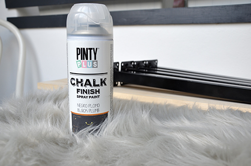 Miután minden fok a helyére került, jöhet a festés. Ezt a legegyszerűbben sprayfestékkel lehet elvégezni, de persze gondoljunk arra is, hogy hova kerül a létra (kültéren pl. érdemes olyan lazúrt/festéket választani, ami ellenáll az időjárás viszontagságainak). Én ezúttal is ugyanazt a Pinty Plus krétafesték sprayt használtam, amit már oly sok projektemnél: