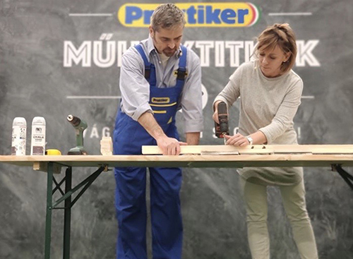 Ezután a csavar szélességének megfelelő fafúrószárral fúrjuk elő a lyukakat. Ez igazából egy emberes munka, de ha ketten vagytok, akkor a két lécet egymásra fektetve biztonsággal össze tudjátok fogni őket és egyszerre ki lehet fúrni a lyukakat.