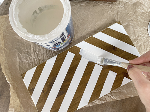 A mintázatot most is úgy ragasztottam, hogy festésnél majd a fehér szín érjen össze, hasonlóan, mint amikor egy szék támláját festettem ITT.