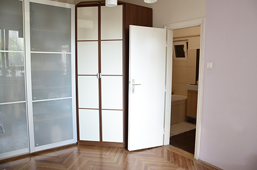 Az előző tulajok által rámhagyott szekrényeket eladtam, jelenleg dobozokban, kosarakban és vállfákon lógatva tárolom a ruháimat (a kabátok nem itt vannak, hanem a gardrób helyiségben). Ez amúgy nem annyira kényelmetlen, mint amennyire annak tűnik, a ruháim mennyisége alapján amúgy is inkább kapszula gardróbom van, nem foglalnak sok helyet, de erről az állapotról inkább nem mutatok fotót, szerintem el tudjátok képzelni…
