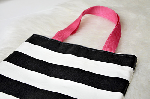 A mostani elképzelés is hasonló, mint Merci esetében, csak más a méret, más a szabásminta, más a táskafül színe, a festett minta is eltérő, szóval igazából csak abban egyeznek, hogy csíkos, kifordítható, 2in1 táska mindkettő. A mostani darab igazából tényleg szatyor forma, mélységet direkt nem is csináltam neki, mert ez most nem shopping bag és nem is strandtáska, azt majd varrok nyárra.