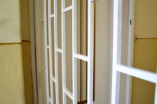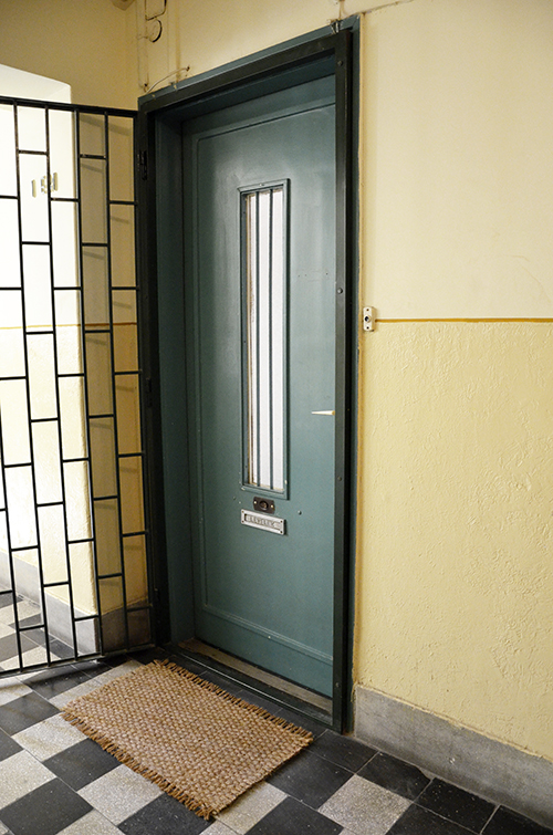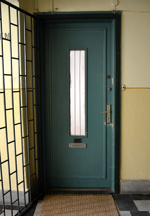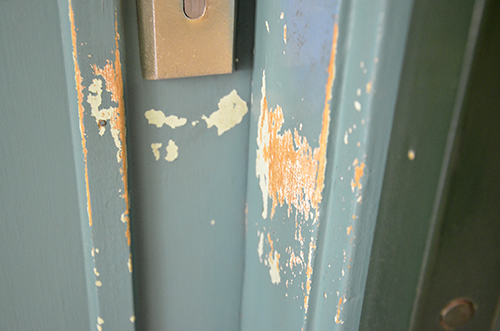 A zárak körül a kulcscsomó az évek során fáig koptatta a zöld festéket, amin látszik, hogy korábban világos menta (kórház zöld?) színű is volt.