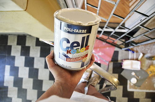 A fedőréteghez Poli-Farbe Cellkolor selyemfényű zománcot használtam mind az ajtó mind pedig a rács esetén, erről a festékről is írtam már korábban. Egy rétegben is gyönyörűen fedett, de azért kell belőle a kettő, biztos, ami biztos, pláne, ha sötétebb felületet festünk világosabbra.