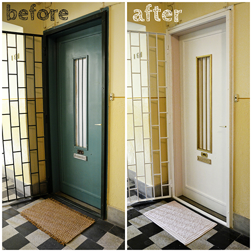 És végül íme egy before/after, amin szépen átjön, hogy a fehér felület mennyire jól veri vissza a rá eső fényt, így sokkal világosabb, barátságosabb a bejáratom.