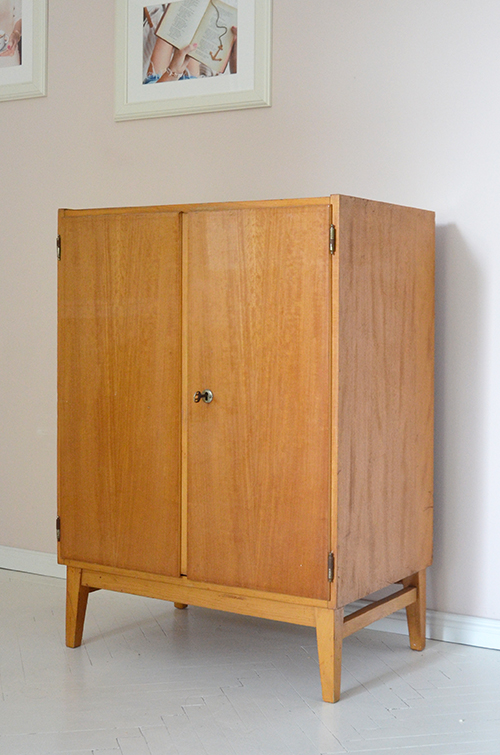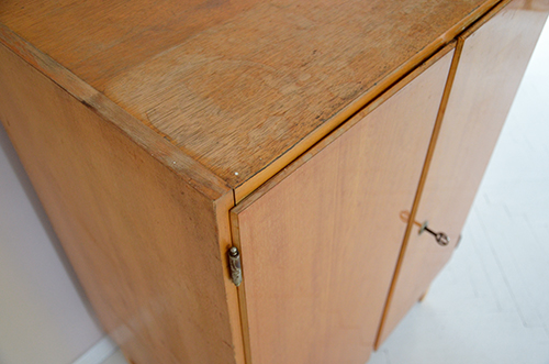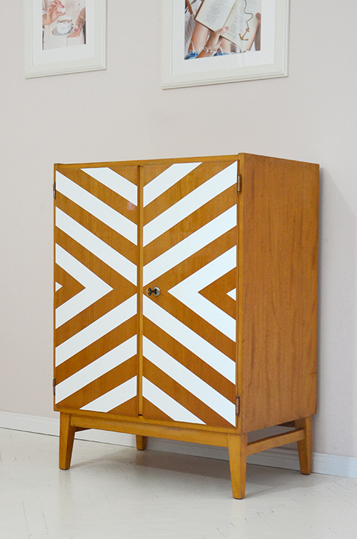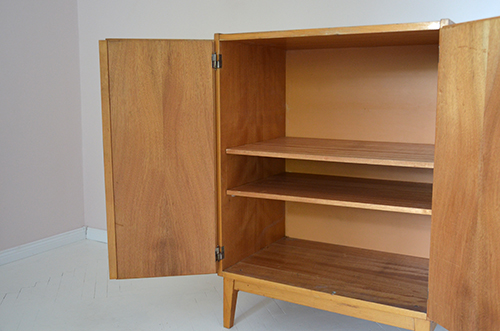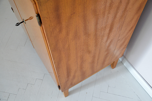 A következő bútor egy kétajtós Varia komód volt. Mindössze 1000 Ft-ért jutottam hozzá, és azon kívül, hogy a tetején van egy kicsit kopottasabb rész, egészen szép állapotúnak mondható.
