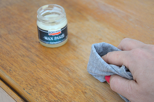 Ezúttal a „felújítás festéssel” vagy a „díszítés öntapadós fóliával” között lehetett választani a szavazóknak. Végül az utóbbi kapta a több szavazatot, pedig szinte biztos voltam benne, hogy a festés fog nyerni. Bár a festék nem került elő a felújításhoz, azért a waxot újból használtam, hogy a fakóbb, kopottabb részeket kicsit frissítsem, és a matt felület kapjon egy kis selyemfényt.