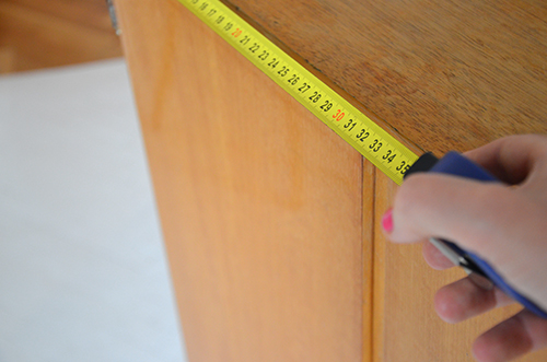 Méreteket vettem a frontokról, hogy papíron pontosan meg tudjam tervezni a mintát, ugyanis egyáltalán nem volt célom, hogy az egész bútort átfóliázzam. Szerintm nagy hiba lett volna egy ilyen szép darab esetén.