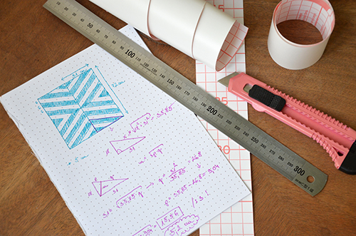 Majd fogtam a sniccert, a fém vonalzót, valamint egy karton alátétet és a számítások alapján csíkokat vágtam ki a matt fehér dekorfóliából. Persze, meg lehet ezt csinálni matek nélkül is, de én azért szeretem, ha precízen ki vannak előre számolva a dolgok, pláne, hogy így a leeső darabok mennyiségét is lehet minimalizálni.