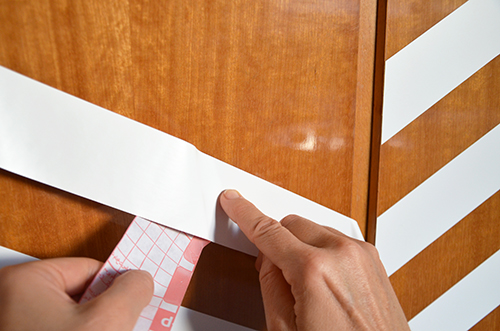 A csíkokat minden felragasztás előtt először dekortapasszal rögzítettem a felületre.