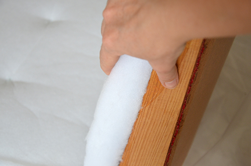 Persze, nem olyan, mintha kárpitos mester csinálta volna (megvannak a maga kis hibái, pl. az íveknél picit ráncosabb az anyag), de azért így is egészen jól sikerült a részeket összeilleszteni.