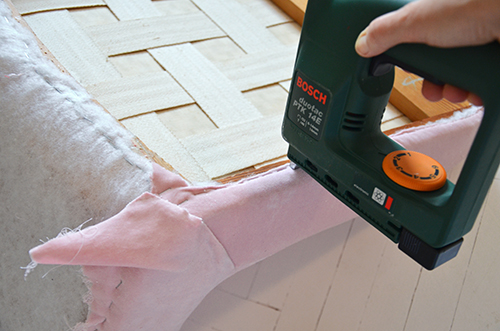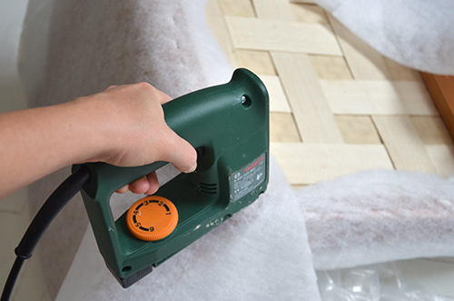 Utóbbit tűzőgéppel rögzítettem a fa vázhoz.