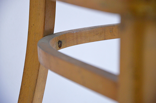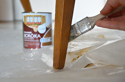 Alapos tisztítás után finoman lecsiszoltam a festendő részeket: a támlát, az ülőfelületet és a lábak végeit.