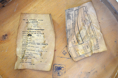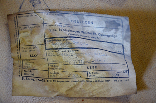 Az alján még rajta van a minőségi bizonyítvány a gyártóval, sőt még egy csomó érdekes információ is kiolvasható róla a szék múltjából.