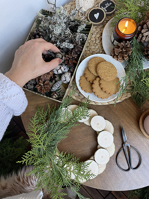 Közeledik az adventi időszak, vasárnap már az első gyertyát gyújtjuk. Így ezen a héten már én is elkezdtem hangolódni, gondolkodni a dekorációkon, amikhez a faház kertjében is fellelhető természetes anyagokat szeretnék használni: örökzöldeket, tobozokat, fakérget, száraz virágokat és gallyakat és frissen szeletelt faágakat.
