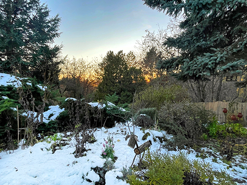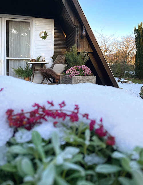 Eredeti terveim szerint a faház fürdőjének és konyhaablakának spalettáira raktam volna, ott szerettem volna fotózni is, de hát a havazás és a meleg novemberi napfény rögtön felül is írta a terveimet.