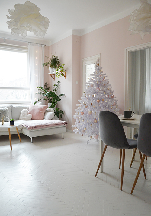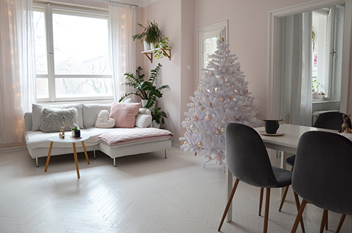 Tudom, hogy a fehér műfenyő megosztó. Én viszont nagyon szeretem, hogy finoman belesimul az otthonomba, egyáltalán nem hivalkodó a megjelenése a nappaliban, de a faházban már nem tudnám elképzelni.