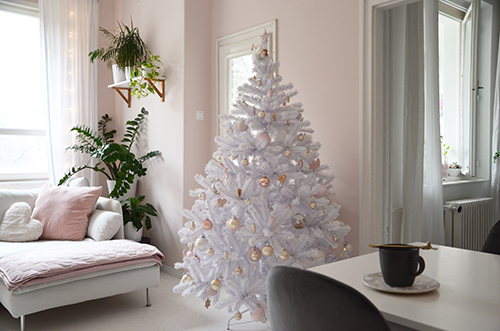A korábbi, 155 cm-es fehér műfenyőmet eggyel nagyobb verzióra cseréltem (NOA – 185 cm), amit most is a Design Karácsonynál szereztem be. Ezt már nem kell megemelni, asztalkára rakni, hogy magasabb legyen nálam. Egyébként a Design Karácsony kínálatában sokféle műfenyő kapható, lessétek meg videón ITT, illetve érdemes személyesen ellátogatni a bemutatótermükbe megtekinteni a kiállított, feldíszített darabokat.