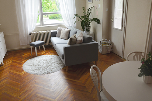 Most valahogy nem jött a WOOW érzés, és kicsit azt érzem, hogy ebben a parketta színe erősen ludas, komor lett a szoba hangulata, és az enyém is. Egy pillanatra felvillant bennem, hogy a parkettát átfestem fehérre. Hm…