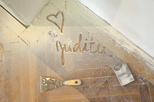A szekrények mögött ért némi meglepetés, úgy mint a fel nem csiszolt parketta rész, a rózsaszínre festett fal, és…