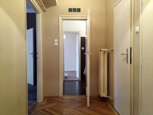 Azért vettem meg ezt a lakást (a folyamatról ITT írtam), mert rögtön – már az első megtekintéskor – beleláttam azt, amit majd ki lehet hozni belőle. A gardrób kialakítása után az előszobának ugrottam neki. Nem ez volt az első „előszoba szépítés” az életemben, hisz az előző lakásomban ugyanezt már bevállaltam (ITT), szóval, nagyjából tudtam, mi vár rám. Nézzük csak, milyen volt a kiinduló állapot!