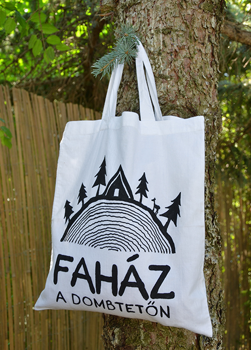 Na szóval, nézzük ezt a bizonyos vászonszatyrot. Magát az alapot már elég régen megvettem egy hobbiboltban, és mosással be is avattam, de azóta csak lapult a többi vászonszatyrom alatt. Aztán kitaláltam, hogy milyen jól mutatna rajta a faház logója, hisz annak is fehér az alapja.