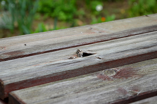 A padok szerkezetileg tökéletesek voltak, de a napsütés és a csapadék hatásai jól látható nyomokat hagyott rajtuk. Megfakult felület, itt-ott korhadásnak indult, vagy éppen kiálló részek.