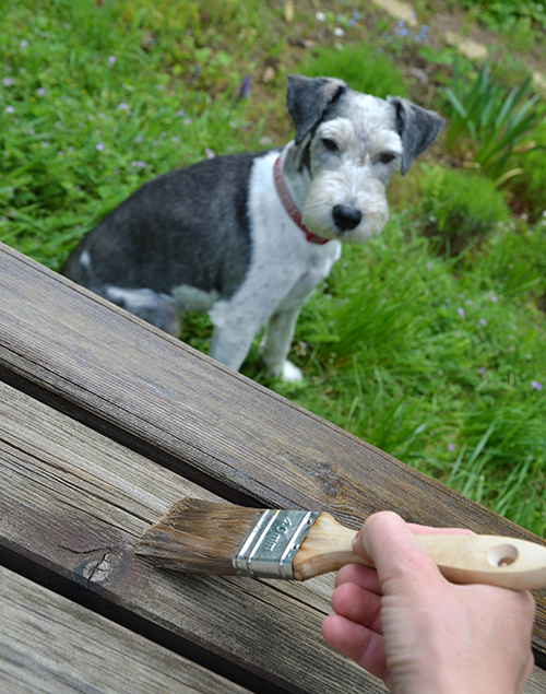 Aztán napokig csak szakadt az eső, mi meg Francival a faházban kuksolva vártuk, hogy végre jó idő legyen és a teraszon lehessen dolgozni. Szoktam a pincében is barkácsolni, de csiszolni és festeni inkább szabad téren szeretek.