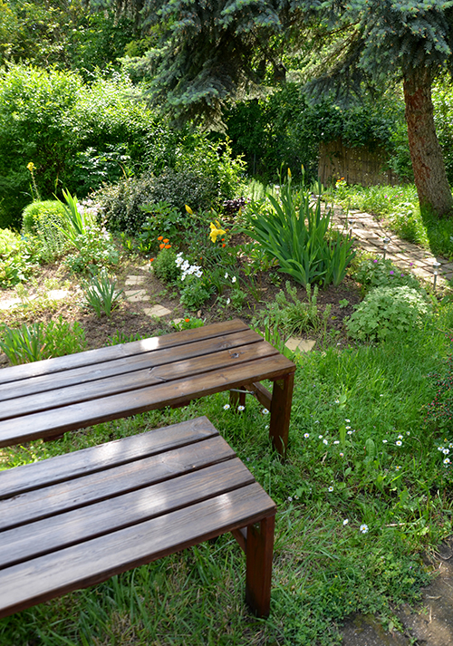Pár nap leforgása alatt a korábban kopott, leharcolt padok teljesen felfrissültek, és megkapták azt a védelmet, amit pár évente megismételve még hosszú évekig tesznek majd jó szolgálatot a kertben.