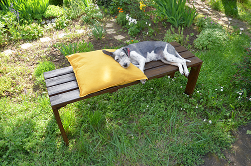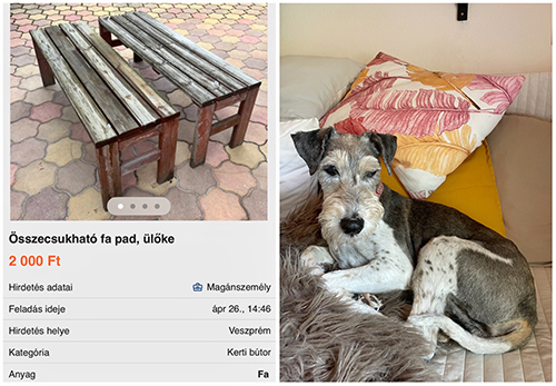 Májusban viszont többnyire már nem itthon a négy fal között, hanem a faháznál és annak kertjében munkálkodtam. Ez adta az ötletet ahhoz is, hogy tulajdonképpen kültéri bútorokat is ideje lenne bogarászni, mert a kertben egyáltalán nem állok jól velük. Szeretnék napozóágyat, egy kerti étkező garnitúrát, meg padot, amire le lehet ülni többen is. A kerti műanyag székek persze praktikusak , de alapvetően nem a szívem csücskei. Szóval elkezdtem bogarászni a Jófogás applikációt és nagyon sok ilyen-olyan állapotú fa bútort mentettem le a kedvencek közé. Mígnem szembejött ez a két fa pad, amiknek darabja volt 2000 Ft, a kettőt együtt 3000 Ft-ért hoztam el.