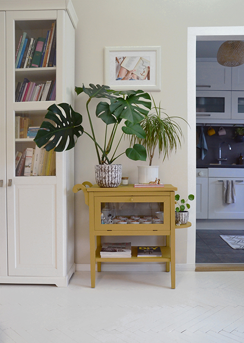 Átlépve 2023-ba, az év első hónapjában a fent említett retro asztalka utódja volt terítéken. A helyzet az, hogy ezt azért már elég régóta kutattam, de végül a Jófogáson meg is találtam a méretben és funkcióban tökéletesen passzoló bútort a könyvszekrény mellé: egy zsúrkocsit, aminek végül teljesen új külsőt adtam.