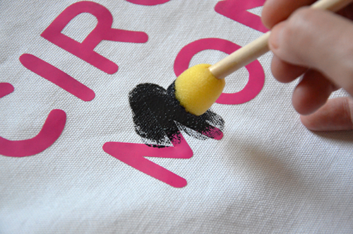 Becsúsztattam egy fóliát a táska belsejébe és így kezdtem el felvinni a textilfestéket a felületre.