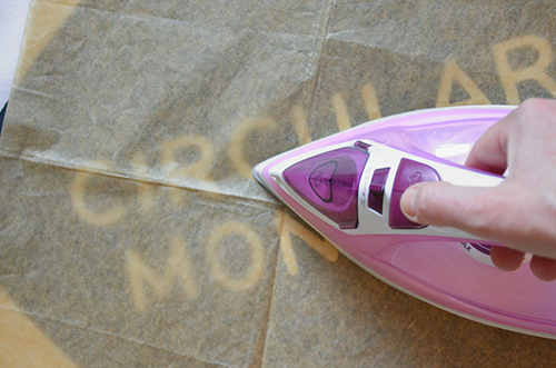 Miután megszáradt a festék, leszedtem a fóliát és sütőpapíron keresztül közepes hőfokon átvasaltam az egész felületet. Így lesz tartós és mosható is.